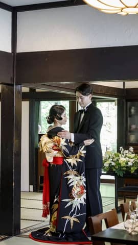 全国のドレスショップとのコネクションを活かし、着たいドレスを取り扱っているショップへのお繋ぎはもちろん、お二人の骨格、パーソナルカラーに合うドレスを取り扱うショップを探し出してご提案する。これが久右衛門邸のドレス選びです。